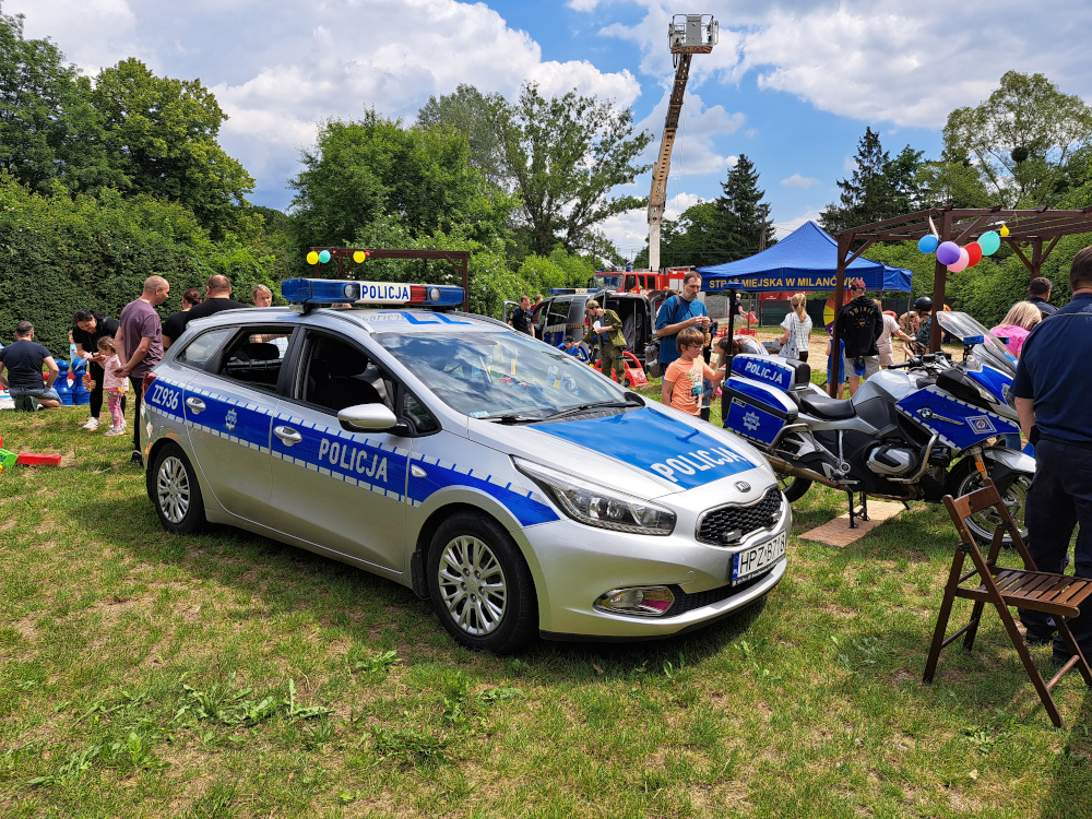 Dużym zainteresowaniem cieszyło się również policyjne stanowisko na pikniku bezpieczeństwa w Milanówku. Funkcjonariusze przygotowali dla uczestników zasób wiedzy na temat zapobiegania różnym zagrożeniom, a także pokaz sprzętu i nformacje o działaniu miejscowego komisariatu.