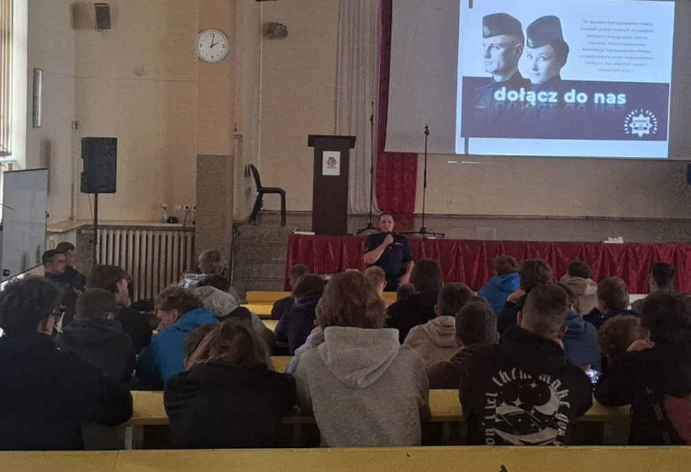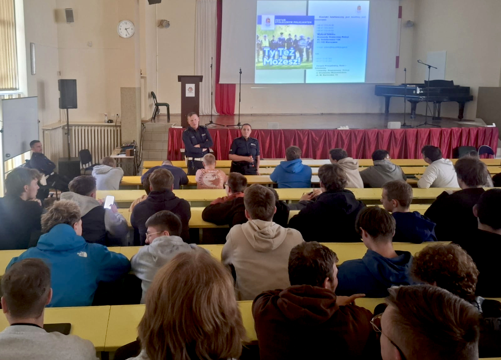 W ramach działań związanych z promowaniem zawodu policjanta, funkcjonariusze grodziskiej komendy przeprowadzili spotkanie z maturzystami z Zespołu Szkół Nr 2. Oficer prasowy, profilaktyk i policjanci Wydziału Ruchu Drogowego przedstawili młodym ludziom wymogi, jakie musi spełnić kandydat do policyjnej profesji i proces rekrutacji. Przybliżyli także przebieg swojej służby i możliwości rozwoju, jakie daje ten zawód.