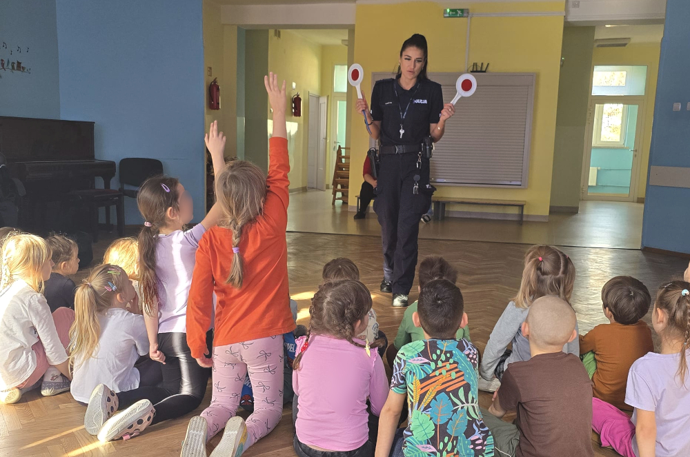 Policjanci z grodziskiej komendy dobrze wiedzą, że edukację dla bezpieczeństwa powinno się zaczynać w jak najwcześniejszym wieku. W ostatnich dniach zajęcia teoretyczne i praktyczne z zakresu bezpieczeństwa na drodze zostały przygotowane przez policjantkę dla dzieci z Przedszkola im. Wróbelka Elemelka. Podczas spotkania w sali, policjantka wyjaśniała dzieciom jak mogą zadbać o swoje bezpieczeństwo na drodze. Przedszkolaki przypominały sobie jak zachować się na jezdni z sygnalizacją świetlną i tam, gdzie jej nie ma. Dzieci dowiedziały się też, czego mali pasażerowie nie powinni robić w samochodzie, aby pomóc kierowcy bezpiecznie dojechać do celu, zwłaszcza w czasie najbliższych podróży na cmentarze. Funkcjonariuszka zachęcała także wszystkich do używania różnych odblasków i instruowała jak każdy świecący element pomaga kierowcom zauważyć pieszego lub rowerzystę na drodze.