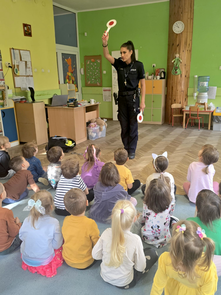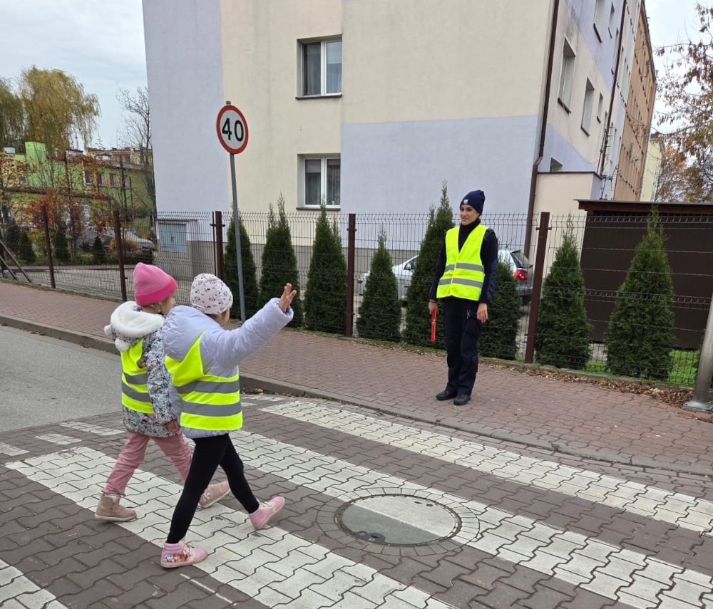 W praktyce mogły to przećwiczyć najstarsze przedszkolaki, które pod czujnym okiem policjantki i opiekunek wyszły w okolice najbliższego przejścia dla pieszych. Dzieci ubrane w kamizelki odblaskowe uczyły się zasad prawidłowego rozglądania się i ostrożnego przechodzenia przez jezdnię. Policjantka zwracała uwagę, czy wszystkie pamiętały o trzykrotnym rozejrzeniu się przed wejściem na przejście i nie rozpraszały podczas przechodzenia. Praktyczne zajęcia pokazały, jak ważna jest ostrożność każdego użytkownika drogi, aby wszyscy czuli się na niej bezpiecznie.