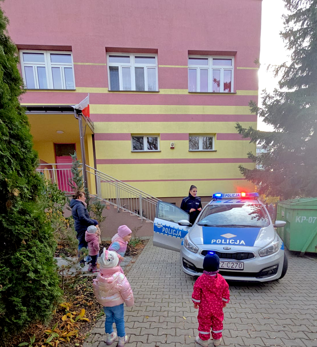 Podczas zajęć dzieci miały również okazję poznać wyposażenie policjanta do służby i obejrzeć z bliska radiowóz. Zostały również zapewnione, ż policjanci codziennie dbają o bezpieczeństwo ich samych i ich bliskich. Mamy nadzieję, że wszystkie przedszkolaki będą korzystać ze zdobytej podczas zajęć wiedzy i dzielić się nią z domownikami.