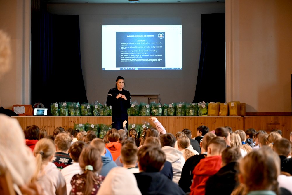 Podczas zajęć w poszczególnych grupach wiekowych policjantka na podstawie ciekawych materiałów przybliżała zasady prawidłowego poruszania się po drogach przez osoby piesze, użytkowników jednośladów, a także pasażerów pojazdów. Przekazała dużo informacji na temat właściwego korzystania z hulajnóg. Omówiła także najczęściej występujące zagrożenia dla każdej z grup uczestników ruchu drogowego i główne przyczyny zdarzeń drogowych z ich udziałem. Z najstarszymi uczniami rozmawiała także o odpowiedzialności prawnej za zachowania niebezpieczne dla nich samych i innych osób.