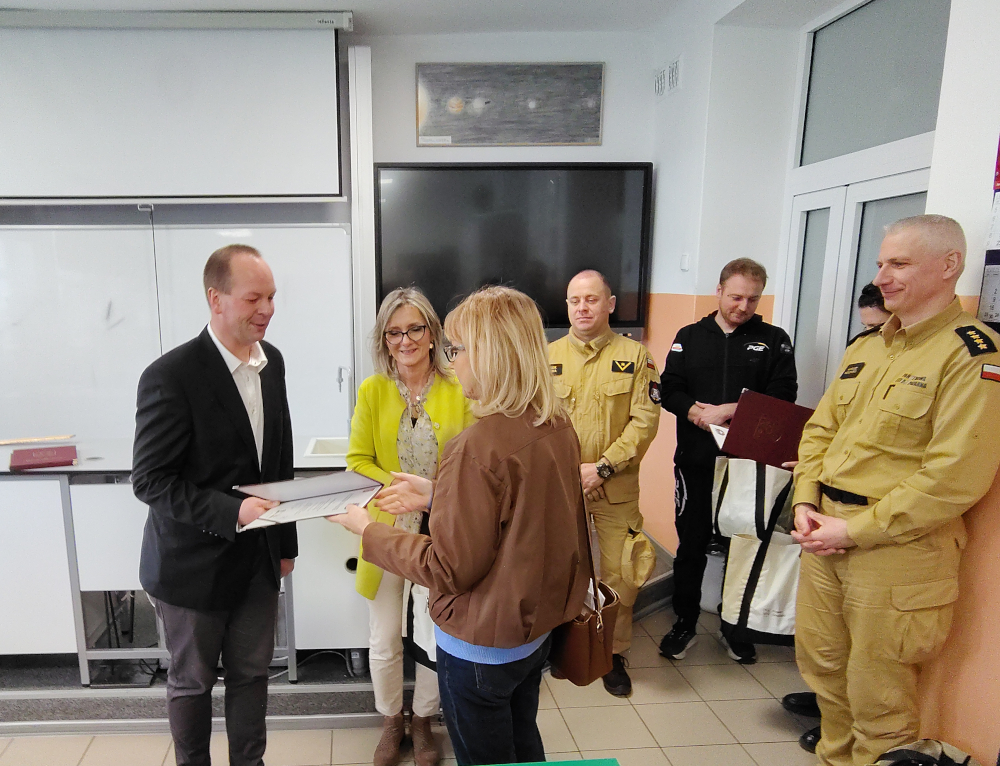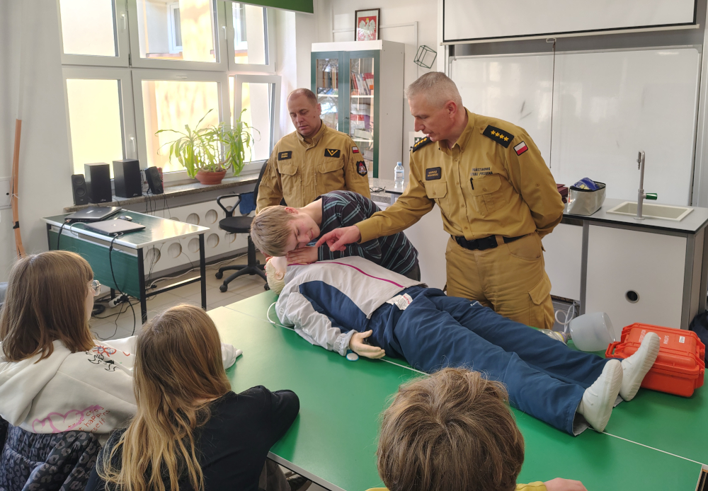 W oczekiwaniu na wyniki uczestnicy mieli okazję poznać zasady udzielania pierwszej pomocy i pod okiem strażaków z Komendy Powiatowej Państwowej Straży Pożarnej w Grodzisku Maz. wykonać praktyczne zadania z tym związane. Chętnych nie brakowało.