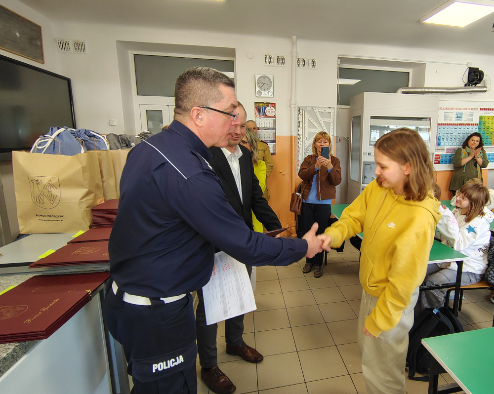 Wicestarosta Powiatu Grodziskiego- Stanisław Firlej, przedstawicielki Starostwa oraz policjanci z grodziskiej komendy i strażacy złożyli wszystkim uczestnikom gratulacje oraz wręczyli dyplomy, nagrody i upominki. Uczniowie otrzymali również od organizatorów życzenia samych bezpiecznych dni i wykorzystywania w praktyce wiedzy zdobytej podczas turnieju. Grodziscy policjanci prosili także młodzież o szerzenie zasad bezpieczeństwa w grupach rówieśniczych i rodzinach, aby na terenie powiatu było jak najmniej zdarzeń drogowych, zwłaszcza z udziałem najmłodszych użytkowników tych dróg.